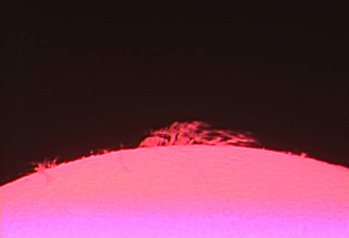 Solar Prominent; Coronado Solar Max 60; Astrovid Planet Cam, 300 frames, RegiStax 2; Photo by Stas Edel and Jeremy Bumgardner.